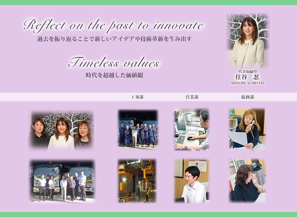 | 社員構成 | ●役員:3名 ●事務員:4名 ●作業責任者:5名 ●自家作業員:10名 ●協力会社作業員:20名 |